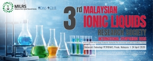 The 3rd Malaysian Ionic Liquids International Symposium 2026 is jointly organized by the Malaysian Ionic Liquids Research Society (MILRS) together with the Fundamental and Applied Science Department and the Chemical Engineering Department at the Universiti Teknologi PETRONAS (UTP). The symposium will also have collaborators from other public and private universities and institutions.
